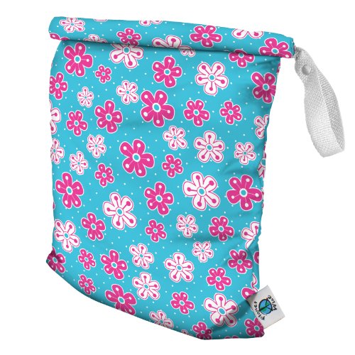 Planet Wise Roll Down Wet Diaper Bag, Aqua Petals, Medium