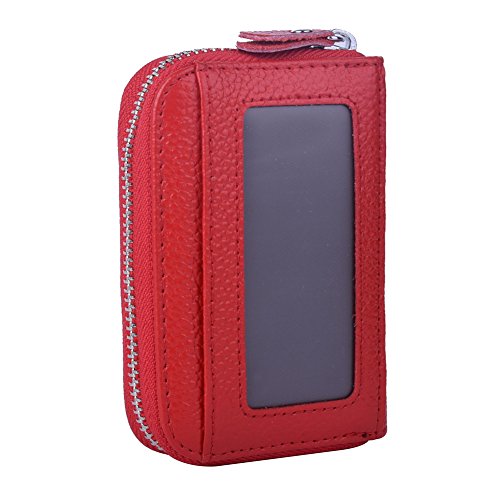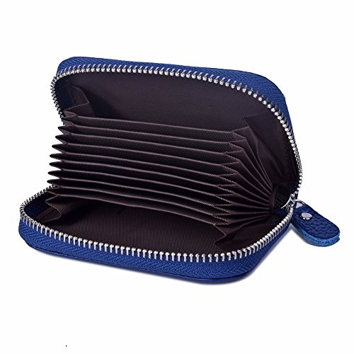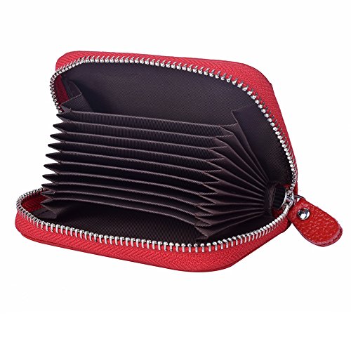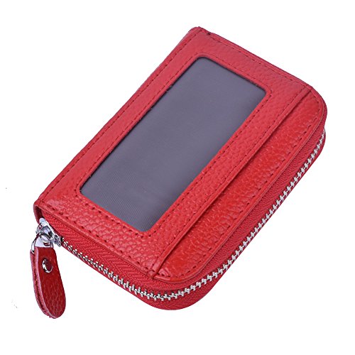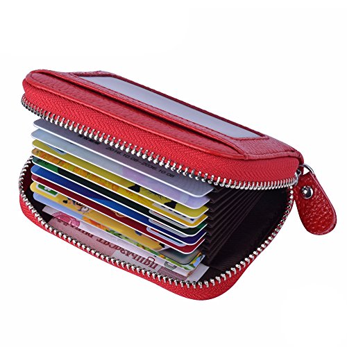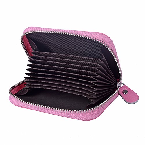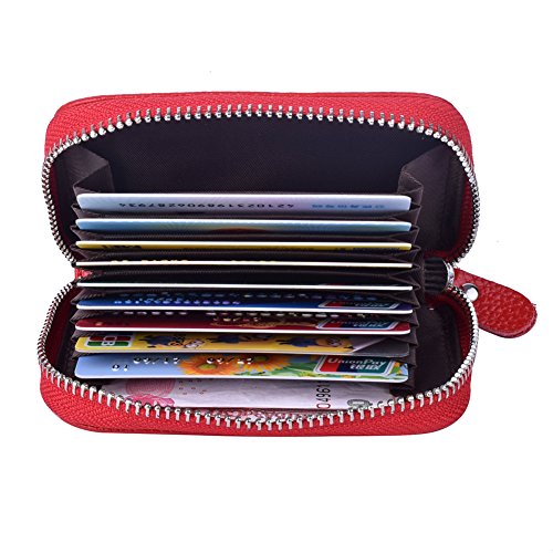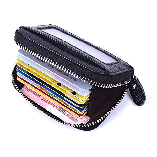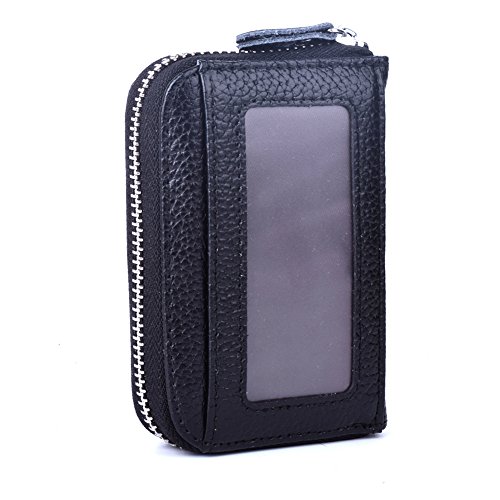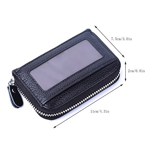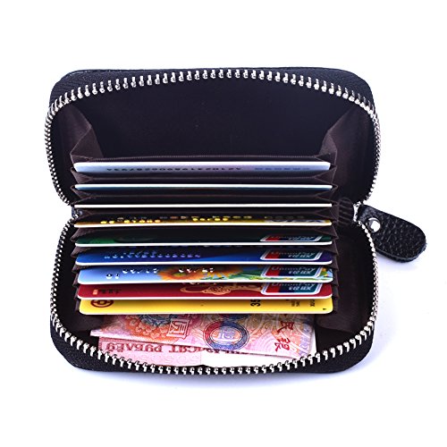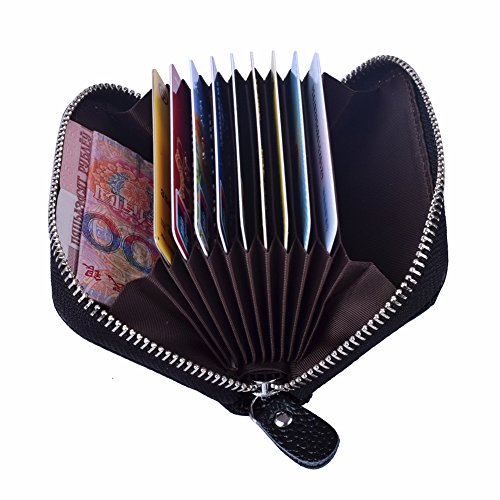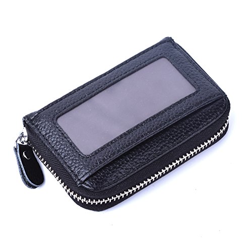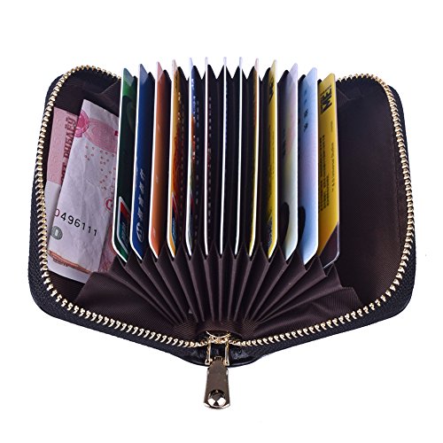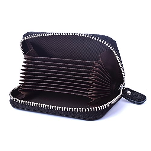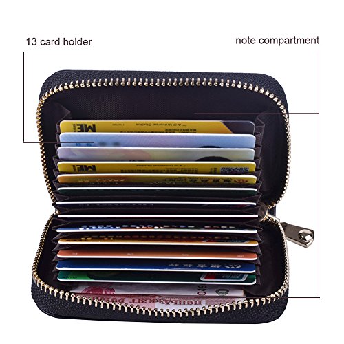 RFID BLOCKING SAFETY PRIVACY - Our case are equipped with advanced RFID security technology, engineered specifically to block 13.56 MHz or higher RFID signals and protect your personal information, like ID Card,Credit Card. MATERIAL - Made of high quality genuine cow leather with fabric lining and soft hardware. ZIPPER CLOSURE DESIGN - Accordion style ,Zipper around design keep your cards and money safe, easy in and out. PACKAGE List:1xcow leather card holder