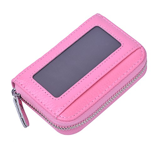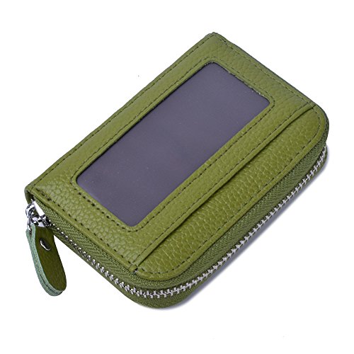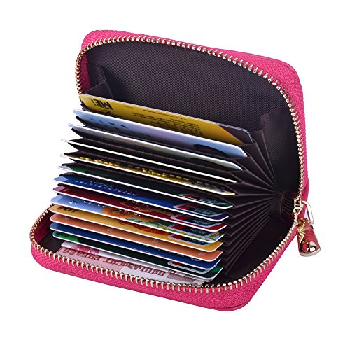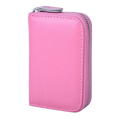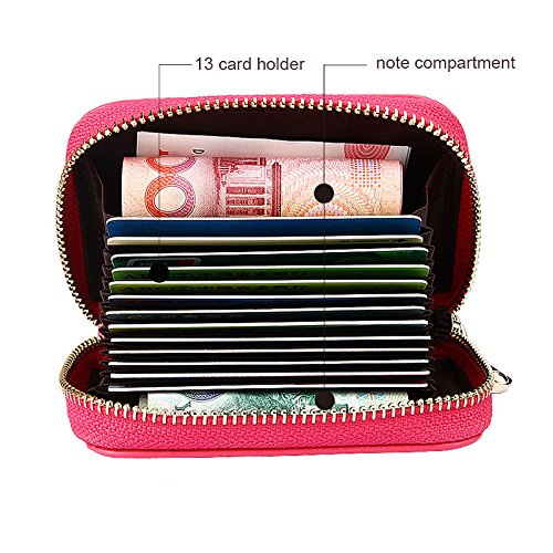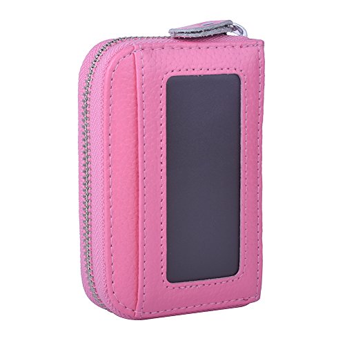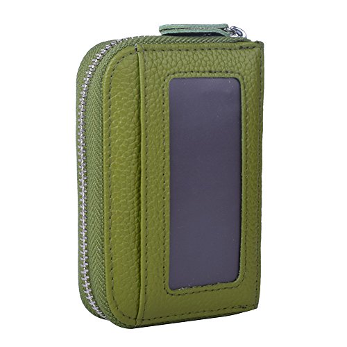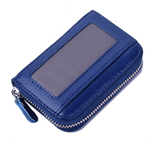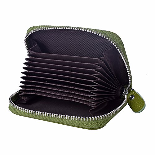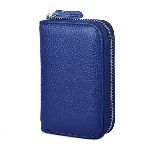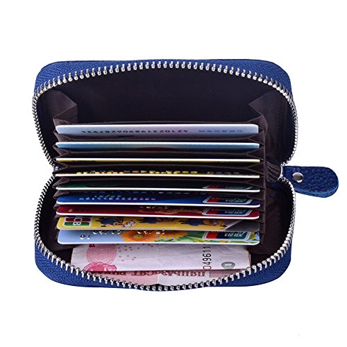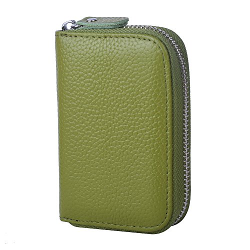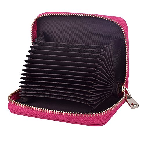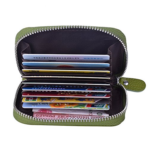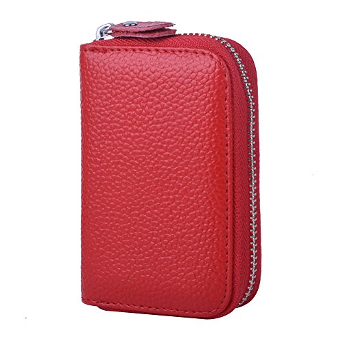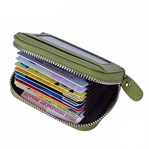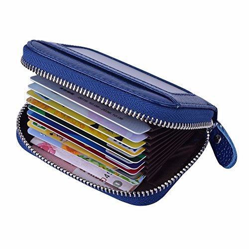RFID BLOCKING SAFETY PRIVACY - Our case are equipped with advanced RFID security technology, engineered specifically to block 13.56 MHz or higher RFID signals and protect your personal information, like ID Card,Credit Card. MATERIAL - Made of high quality genuine cow leather with fabric lining and soft hardware. ZIPPER CLOSURE DESIGN - Accordion style ,Zipper around design keep your cards and money safe, easy in and out. PACKAGE List:1xcow leather card holder
