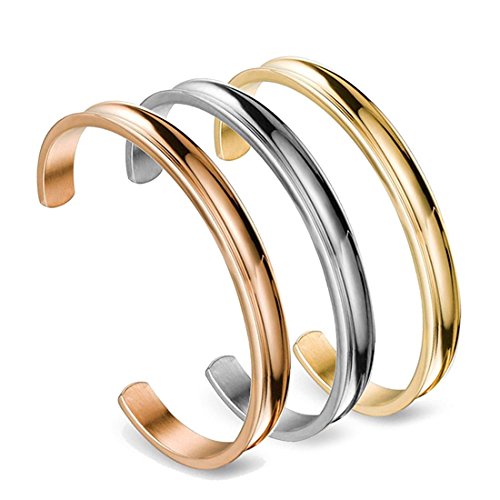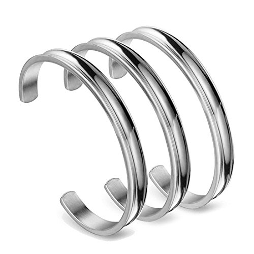 WUSUANED Hair Tie Bracelet Stainless Steel Grooved Cuff Bangle Gift for her
