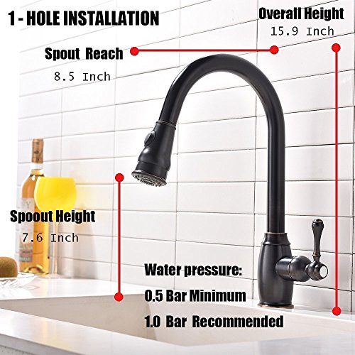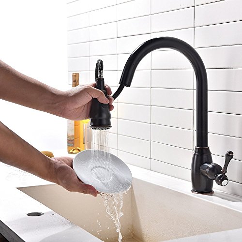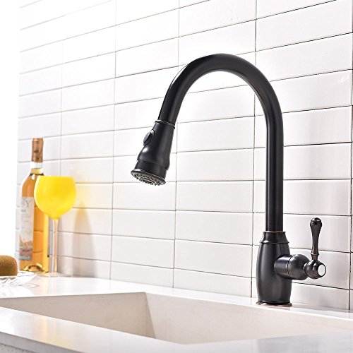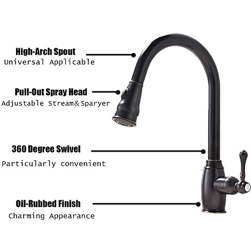 VAPSINT Brilliant Oil Rubbed Bronze Single Hole Single Lever Swivel Mixer Pull Down Kitchen Faucet, Pull Out Sprayer Kitchen Sink Faucets