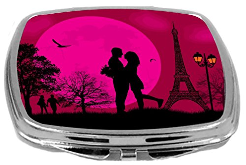 Rikki Knight Romantic Couple in Love on Pink Parisian Background Design Compact Mirror, 17 Ounce
