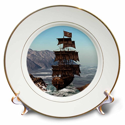 3dRose cp_172244_1 Pirate Ship Sails Trough Coastal in Strong Winds-Porcelain Plate, 8-Inch