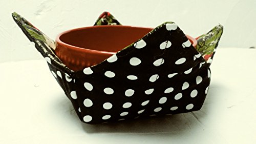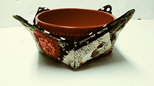 Product Description Soup Cozy- Protect hands and furniture from hot bowls of soup, chili, and oatmeal with a soup bowl cozy that's as cute as it is functional! Perfect for cold bowls of ice cream, too! Insulate your coffee pot while on the table. Versatile fabric bowl! You will receive one Country Rooster/black polka dot pattern as shown. Great for hostess gifts, housewarming gifts or for your own family. (My kids love using them!) Use as a fabric bowl on counters for keys, fruit or other small items. Measures approx 8" square, fits a standard soup/cereal/ice cream bowl. Machine wash gentle, lay flat or hang to dry. May be used directly in the microwave for short periods of time, not meant for extended heating times. 0