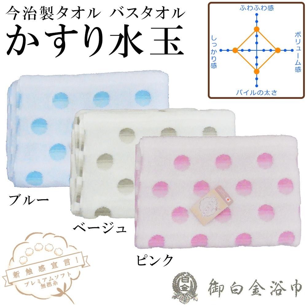 グラデーションの可愛らしい水玉模様が目を引く、ガーゼとパイルのタオルです。やわらかさとサラッと感の両方を楽しんでいただけます。 製造国:日本 素材・材質:綿100% 商品サイズ:約60×120cm 重量:300g 仕様:ガーゼ(部分)無撚糸(部分) ※サプライヤー直送品 ご注文後2~3営業日後の出荷となります【商品名】今治製タオル 御白金浴巾 かすり水玉 バスタオル 24-1443270 B・ブルー