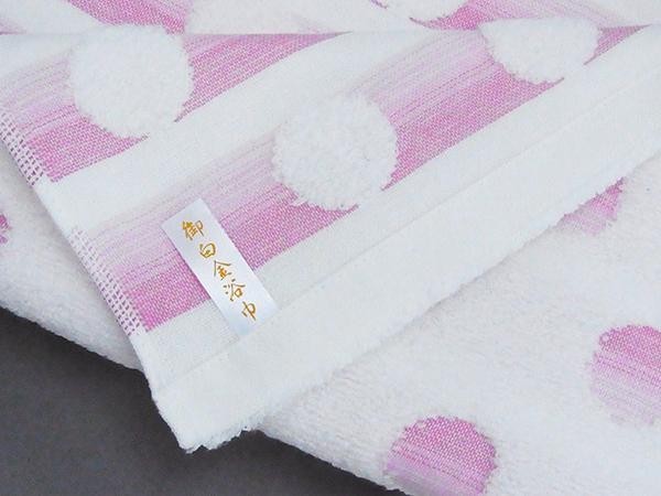 グラデーションの可愛らしい水玉模様が目を引く、ガーゼとパイルのタオルです。やわらかさとサラッと感の両方を楽しんでいただけます。