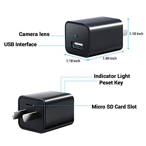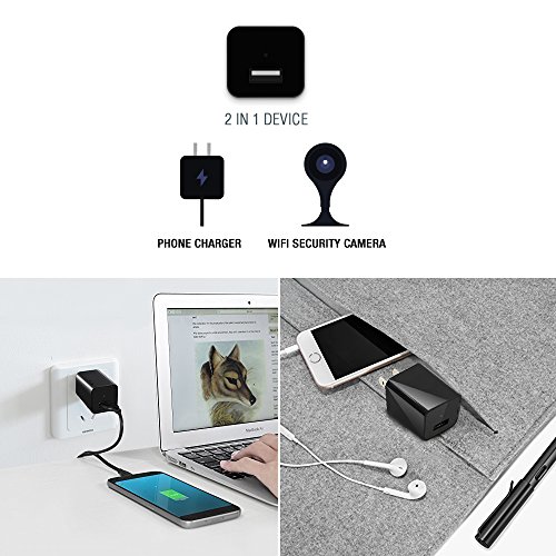 Two-in-One: The camera is disguised in what looks like a normal AC power adapter,just plug it into a power outlet to start record video without anyone knowing it. Meanwhile, it's also a phone charger when pluging into power source.