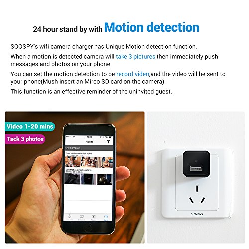 1080P WiFi Hidden Spy Camera USB Wall Charger-SOOSPY Wireless AC Adapter Security Camera Video Recorder with Motion Detection,App Control for IOS and Android