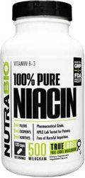 NutraBio 100% Pure Niacin (500mg) - 120 Vegetable Capsules
