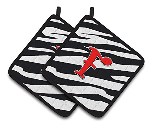 Caroline's Treasures Monogram Initial F Zebra Red Pair of Pot Holders CJ1024-FPTHD, 7.5HX7.5W, Multicolor