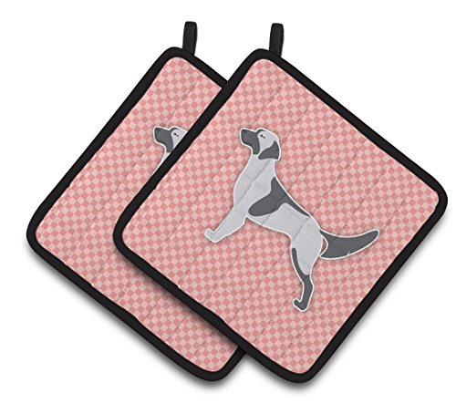 Caroline's Treasures English Setter Checkerboard Pink Pair of Pot Holders BB3581PTHD, 7.5HX7.5W, Multicolor