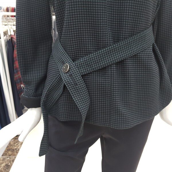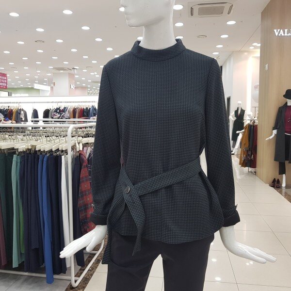 클랙식한 하운드투스 체크패턴이 포인트되는블라우스.벨트로자연스럽게 허리라인을잡아입을수있습니다.