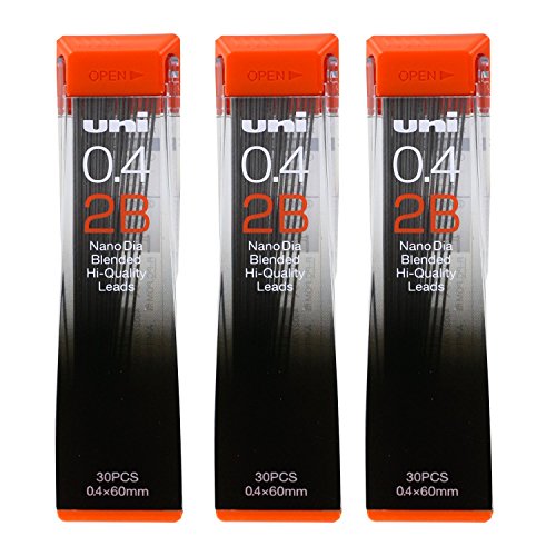 Uni-Ball Nano Lead Mechanical Pencil Lead Refills, 0.4mm, 2B, Black Lead, Pack of 90