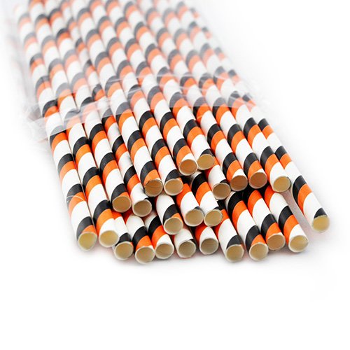 Carejoy® 25pcs Biodegradable Paper Drinking Straws Orange and Black Double Stripes 7.75" Retro Vintage Style Durable