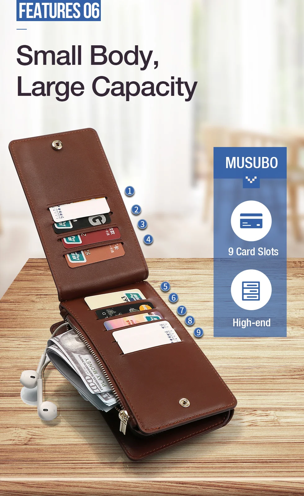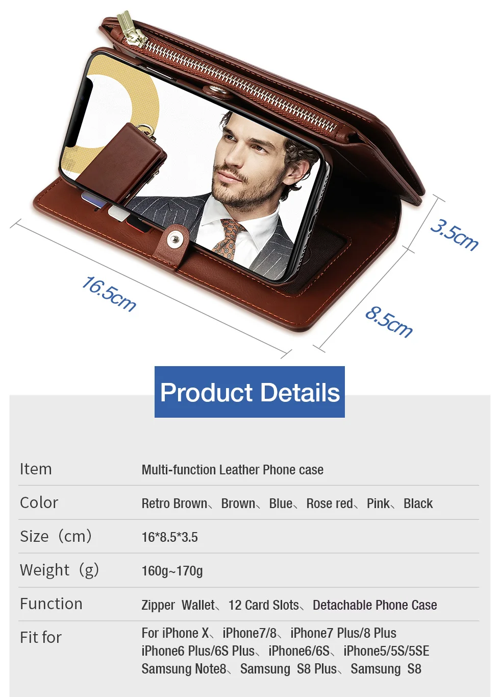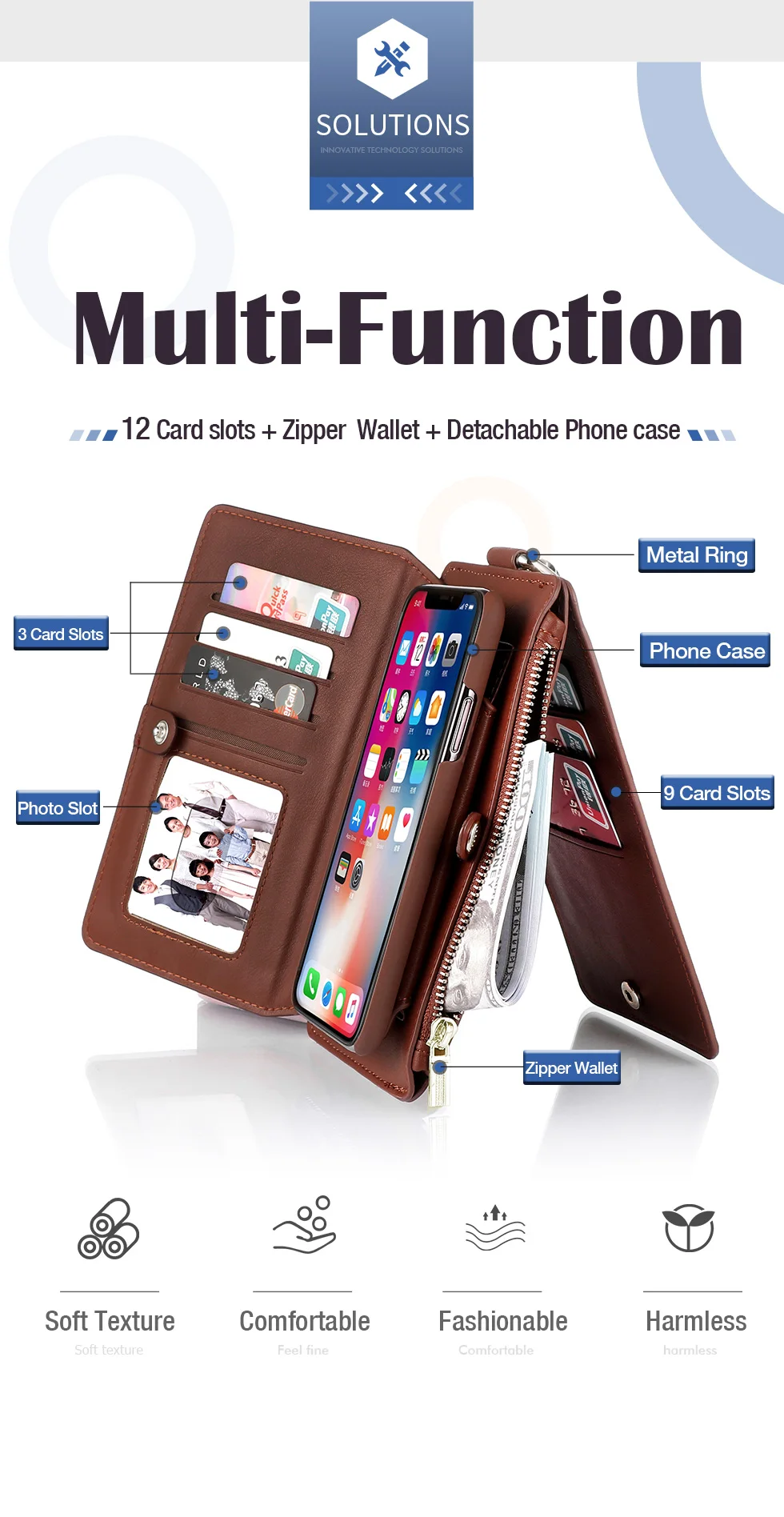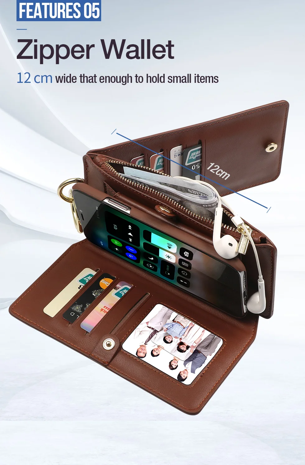 Features:Multi function: 12 card inserted +1 zipper wallet +1 photo frame
