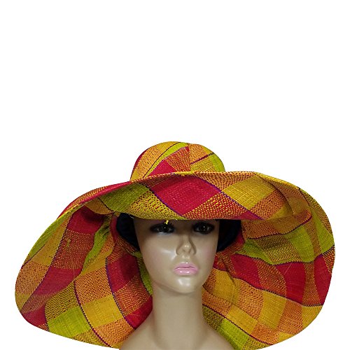 Binding : Apparel Product Description A beautiful shape-able lightweight multi-colored hat (red, yellow, lime green, orange) featuring a 7-inch brim that we weave by hand in Madagascar. Its shape-able brim allows the owner to wear the hat in many different styles. This hat is an eco-friendly product crafted from natural Raffia and other renewable and sustainable raw materials utilizing a variety of energy saving techniques. It contains a comfortable cotton lining and is adjustable with a drawstring interior. All of the colorings on this hat was done using a long-lasting vegetable-based dye. Its a dual layer of fine woven Raffia allows the hat to offer UPF 50 /SPF 30 sun protection which makes it a great hat for when you will be outdoors for an extended period of time. Our big brim Madagascar raffia hats are pack-able and are rolled easily for traveling. Spot clean the hat with cold water when needed, do not use any soap or detergent.