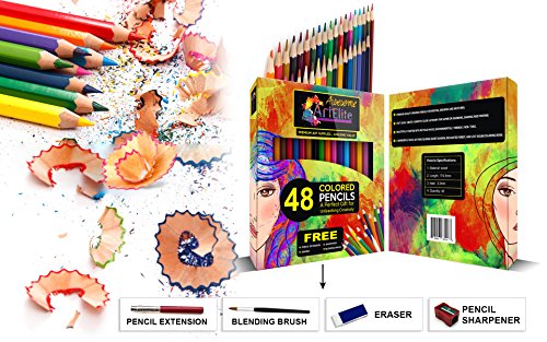 ★HIGH QUALITY WITH GREAT PRICE, RECOMMENDED BY CUSTOMERS OVER OTHER BRANDS - Prime quality product manufactured with carefully selected high-quality material. Ideal for smooth coloring experience. High print effect. You'll notice each art pencil has long lead, has new breakage resistant technology.Absolutely foolproof value of your money. Also come with a free premium quality sharpener; rubber, blending brush and pencil extension.