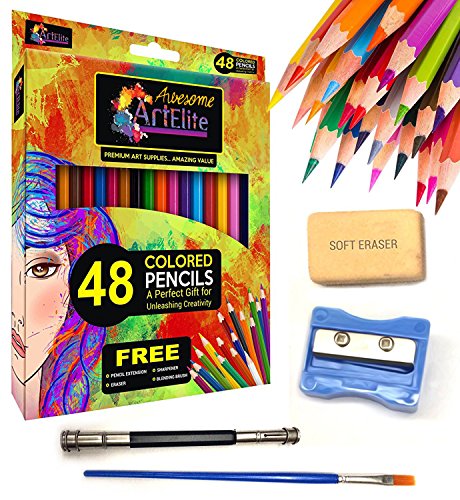 Are You Seeking The Premium Coloring Pencils For Kids & Adults To Nurture Their Creative Side, Then Your Search is Finally Over When You Purchase Our Art Elite 48 Color Pencil Set Along With FREE Sharpener, Eraser, Blending Brush And Pencil Extender & Start Enjoying The Benefits of Creative Relaxation Today! These colored pencils are at a great scale because they look better, perform better and care for the environment and have a great potential for being the best in the market. Every piece of art or drawing looks more impressive and larger than life if your colored pencils make the experience all the more worthwhile and you can accomplish that with our color pencils These color pencils are the first choice for students, teachers & coloring books enthusiasts alike and all those who want to express and bring to life their vision with vibrancy and style on a canvas. What's in the box: 48 color pencils 1 Eraser 1 Sharpener 1 Blending Brush 1 Pencil Extender Here's why you should choose us: ★ Smooth feel well Smudg. These give us the edge since these techniques have been implemented in such a difficult. These color pencils will allow a smooth feel with a reasonably well smudging in hand as well, so you can get the maximum benefit out of them. ★ Innovative breakage resistant technology is implemented and will astound you-you'll have a hard time breaking them even under pressure (great benefit for kids!). ★ Hexagonal shape allowing you "no-slip" pencils with comfortable working experience for hours. ★ Money-Back-Guarantee. With no questions asked, if for any reason ( or no reason at all) the product does not fulfil your demands, we'll return the amount spent on the product. Click the "Add to Cart" button now to enjoy your unique, premium set of these well-crafted 48 colored pencils.Feature