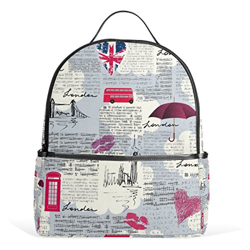 -. Title : Cooper girl London Newspaper Lightweight School Backpack for Boys Girl Kids