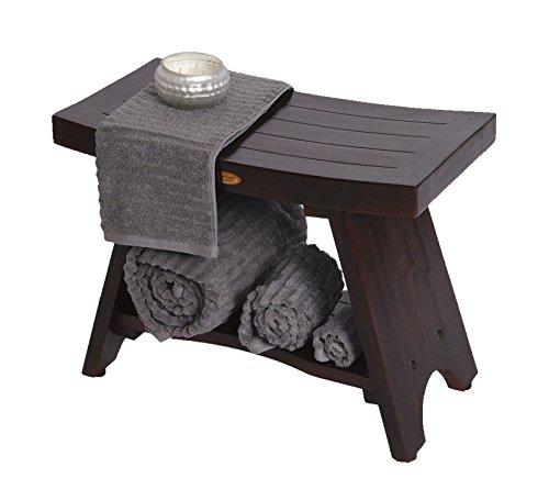 Serenity Eastern Style 30" Serenity Jumbo Teak Shower Bench with Included Shelf- Store & Organize Towels & Toiletries- Bathroom