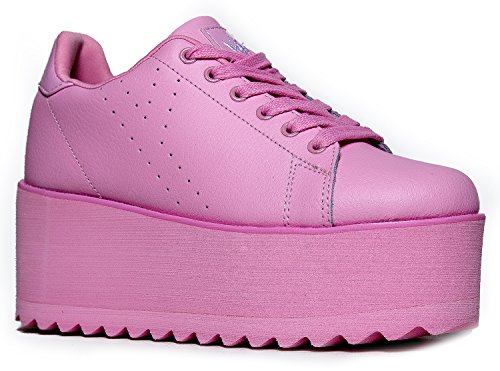 Product DescriptionYour sporty style will look clean with these lace up sneakers! Platform sneakers have a vegan leather upper with a peforated "Y" and a round toe.0