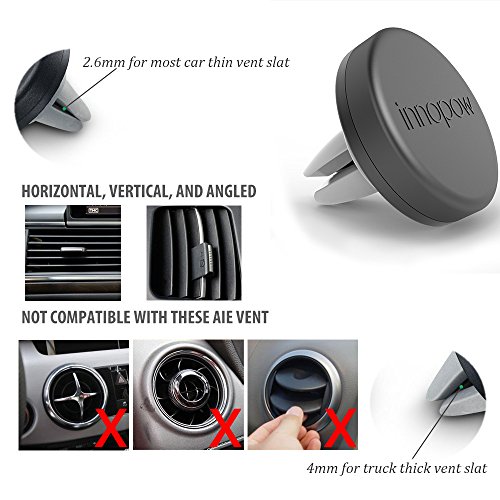 【No Damages to Devices】-The ultra-thin magnetic plates are friendly to your phones,suck as iPhone 6s plus,Samsung Galaxy S7 edge.★ The magnets adopts closed forced field tech and have no effect on the display or gps electronics.★ No troubles with your phones after using the innopow car mount.★ 30days moneyback & Lifetime Replacement Warranty