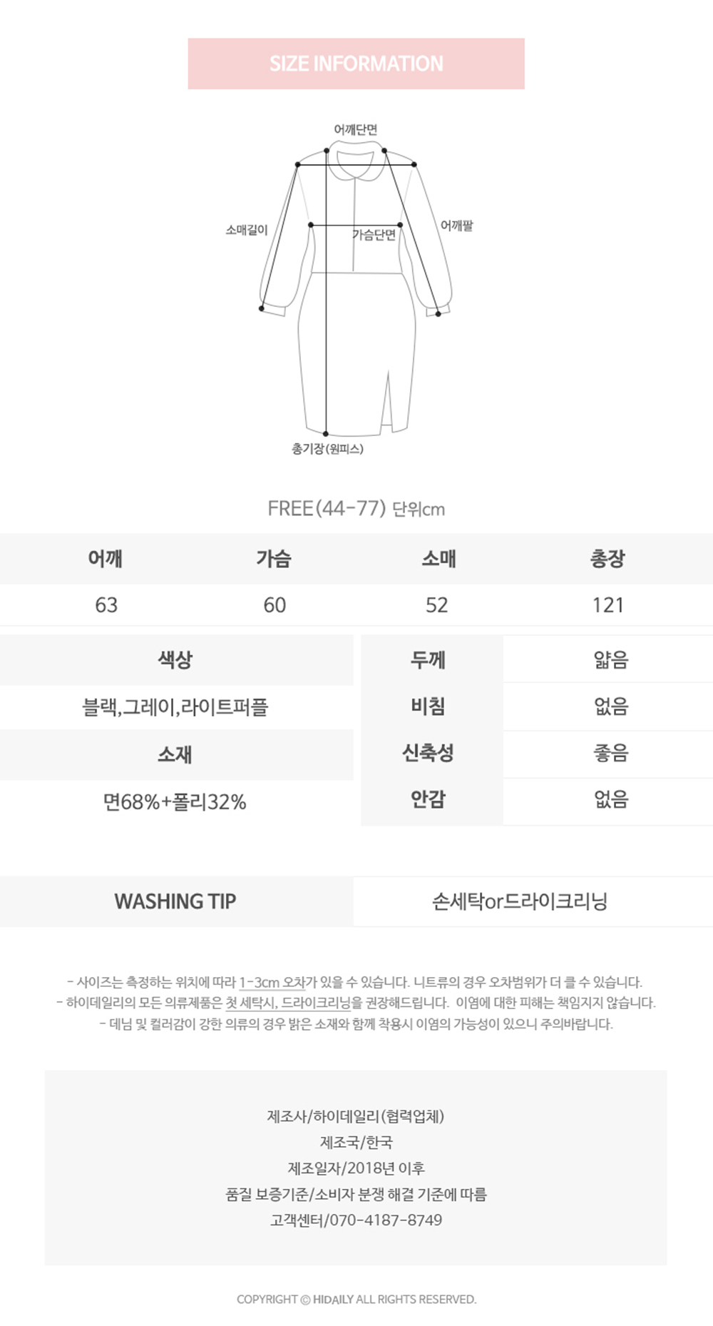 첫 세탁시 단독세탁 및 드라이크리닝을 권장합니다.