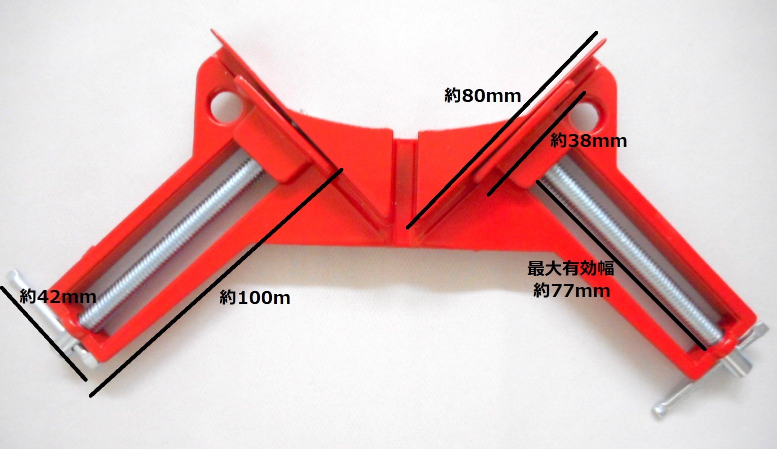 It is a corner clamp indispensable for rectangular fixation of material and bonding work, 45 degree cutting etc.