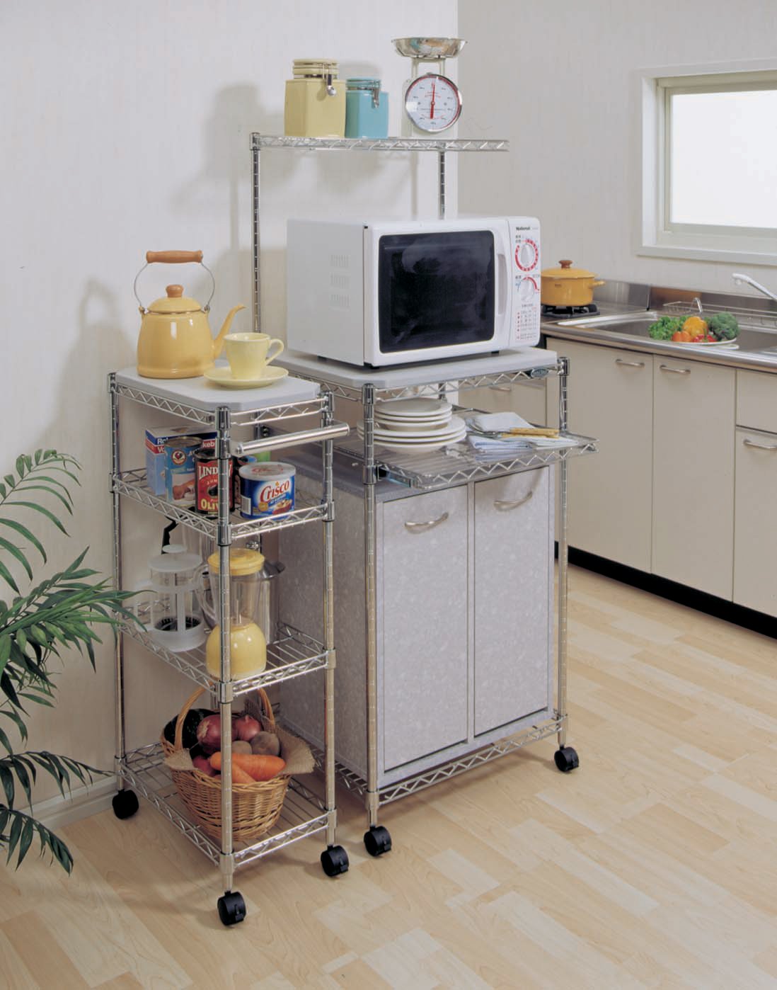 The height of the half shelf board and the slide shelf board can be freely adjusted, and on the setting table and storage shelf