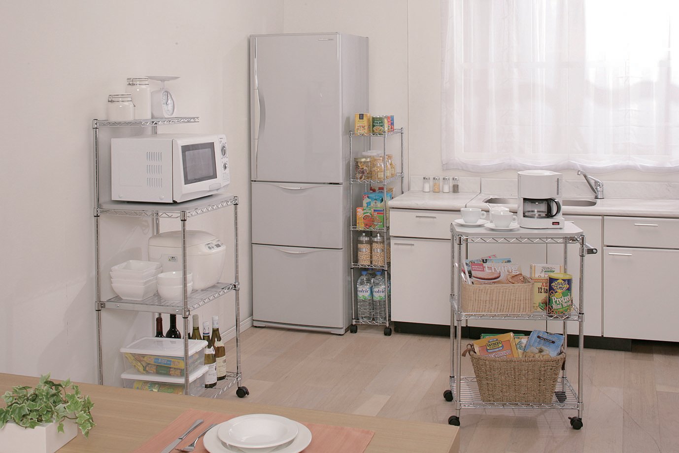 Since it has a slide shelf board which can adjust the height, it can also serve as a cabinet and storage shelf.
