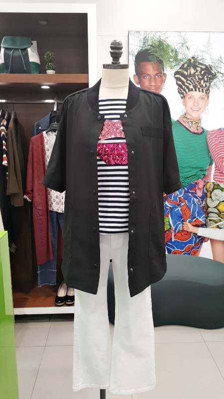 면100% 여름점퍼입니다.홑겹이라 가볍게 걸치기좋은 상품이구요.앒고 시원한 면제품입니다.힢선을 가려주는 기장으로 스키니룩과도잘어울리는 상품입니다.등판스마일프린팅 너무귀여운 점퍼입니다.