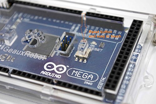 Case for Arduino MEGA. This a well-designed case: it has reset button outside and provides access to all ports. It is made of high grade acrylic. It is a very sturdy case, fastened by metal screws and standoffs. Ardino Mega is not inclued