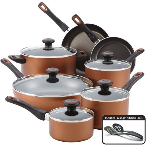 -. Title : Farberware Dishwasher Safe High Performance Nonstick 15-Piece Cookware Set, Copper