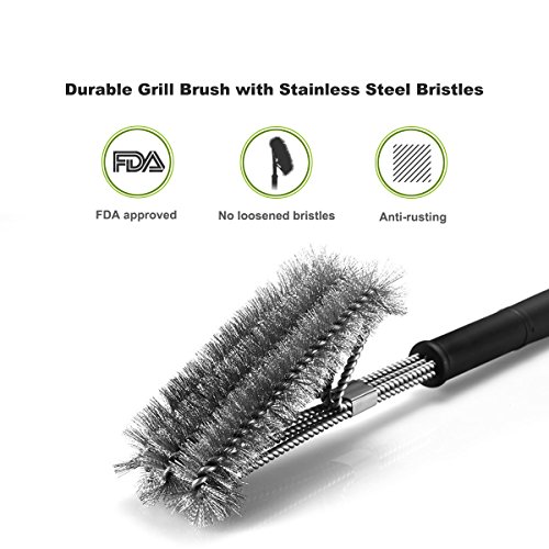 Effortless Cleaning: Heavy-duty 3 in 1 super thick stainless steel bristles easily clean the grill without scratching or damaging the surface