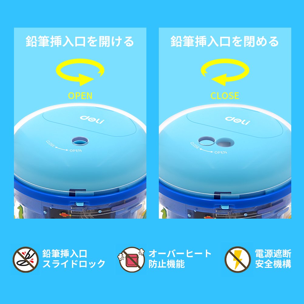 2. Rotate the top lid to the OPEN (working state) position, insert the pencil vertically into the pencil loading mouth, hold the state pressed down, the electric scaler starts.