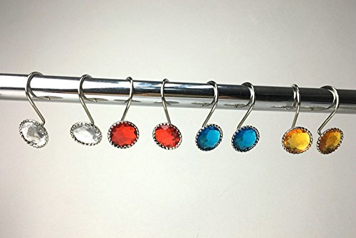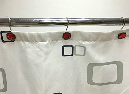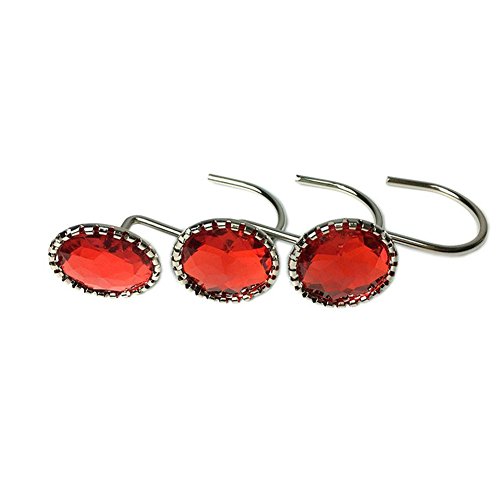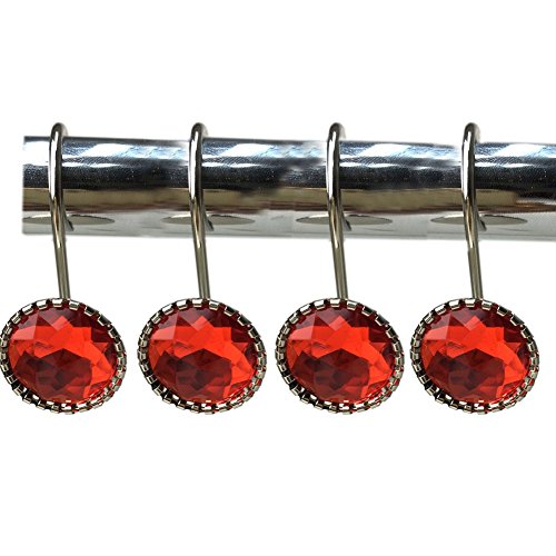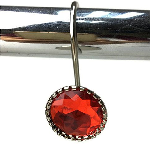 EleCharm 12 Pcs Modern Style Acrylic Crystal Shower Curtain Hooks For Bathroom (Red)