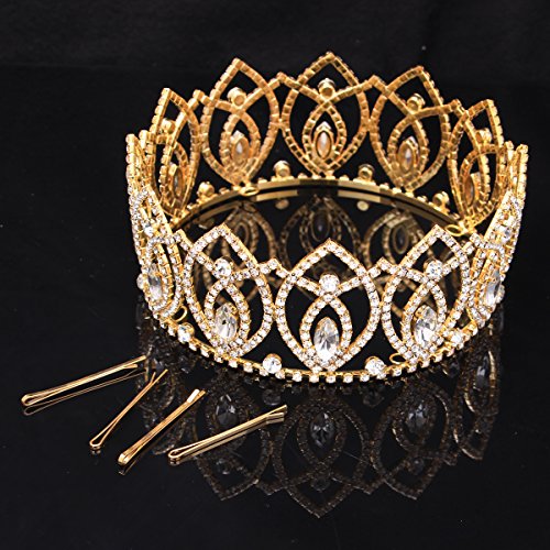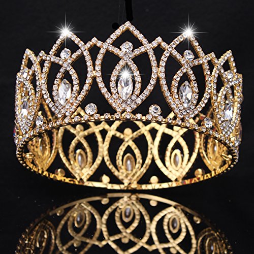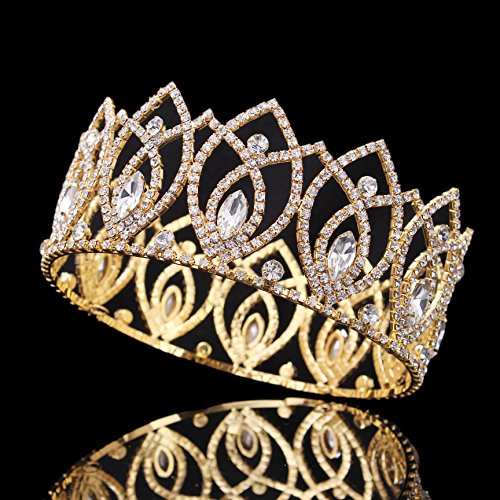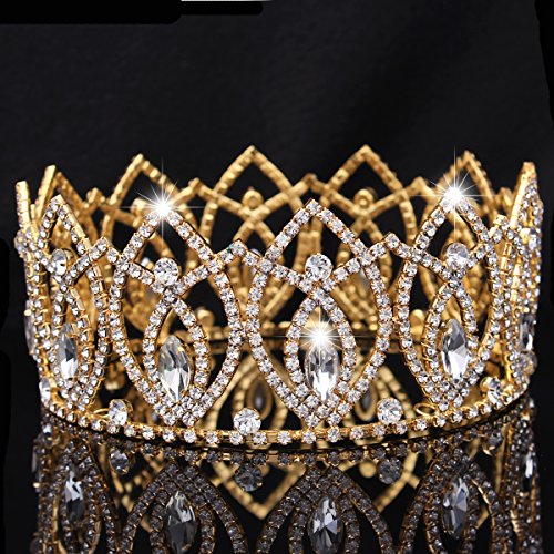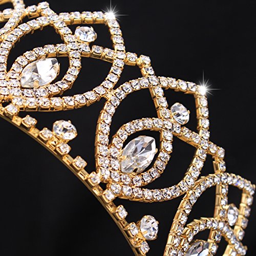 Stuffwholesale Shinning Crystal Rhinestone Crown Tiaras Gold Silver Evil Eyes Prom Party Hairband Jewelry Accessories (Gold)