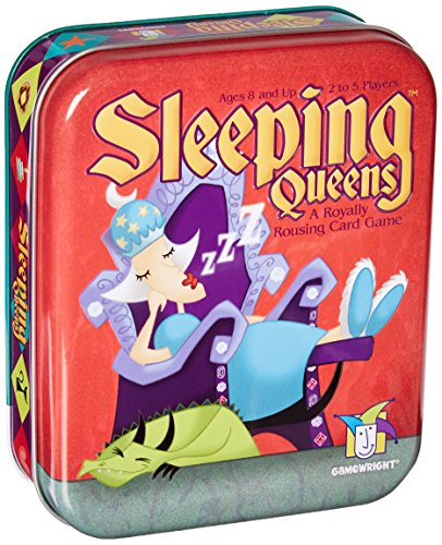 Rise and Shine! The Pancake Queen, the Ladybug Queen and ten of their closest friends have fallen under a sleeping spell and it's your job to wake them up. Use strategy, quick thinking and a little luck to rouse these napping nobles from their royal slumbers. Play a knight to steal a queen or take a chance on a juggling jester. But watch out for wicked potions and dastardly dragons! The player who wakes the most queens wins. Imagine a place where there's a queen of all pancakes, a king of cookies and a pack of over-protective dragons. If this sounds like something out of a dream, it actually is! Sleeping Queens was invented by 6-year-old Miranda Evarts, who thought up the game one night when she couldn't fall asleep. She awoke the next morning and with help from her older sister, Madeleine and her parents, Denise and Max created this wonderfully whimsical world of napping nobles. As you immerse yourself in the Evarts's fantasyland, you will find a game that helps develop memory, strategy, and elementary arithmetic skills. Just be careful when playing potion cards or you could wind up putting all the players to sleep!
