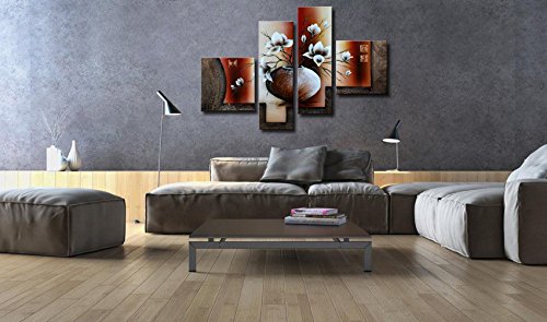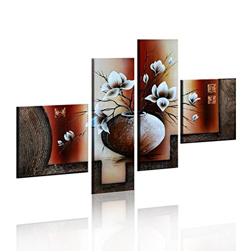 -. Title : FLY SPRAY 4-Piece 100% Hand-Painted Oil Paintings Panels Stretched Framed Ready Hang Flora Plant Flower Lily Modern Abstract Canvas Living Room Bedroom Office Wall Art Home Decoration