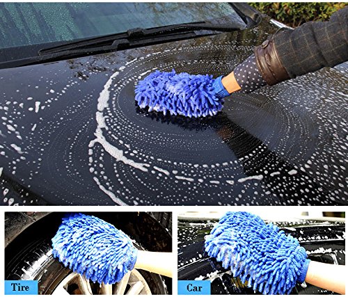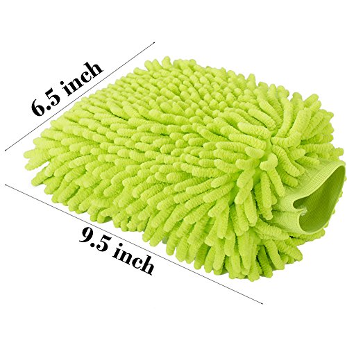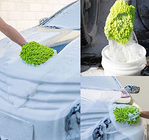 - ❤ High Quality Material: Premium car wash mitts have high density double side microfiber / chenille. Extra plush, absorbent, and ultra soft. Thicken plastic between microfiber and textile lining, give you powerful waterproof ability.