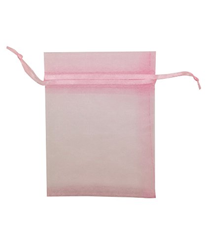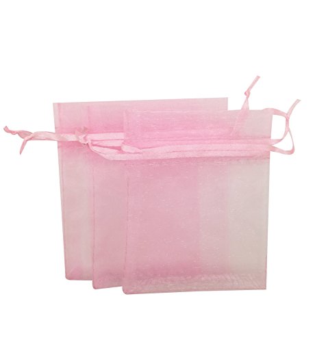 SUNGULF 100Pcs Sheer Organza Drawstring Pouches Wedding Gift Bags 3x4 Inches (Pink)
