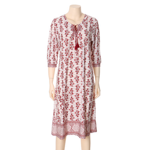 심플한 칼라 구성의 보다나염 제품으로 미시부터 부인군 까지 커버 가능한 스타일입니다. 깔끔하게 떨어지는 네크라인에 술장식 포인트를 주고 보 다나염을 활용한 밑단 활용이 고급스러운 이미지를 연출 해줍니다.