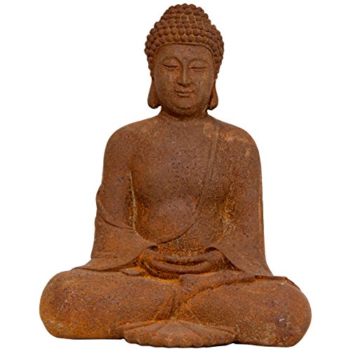 Oriental Furniture 12" Japanese Sitting Zenjo-in Rust Patina Buddha Statue