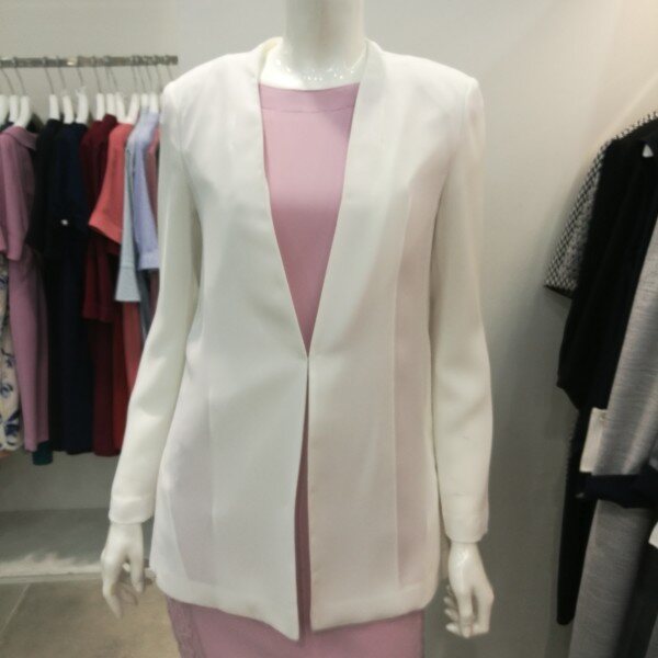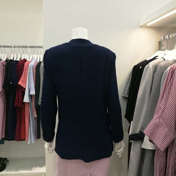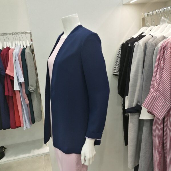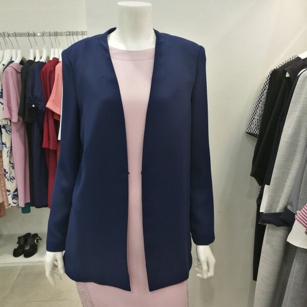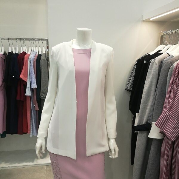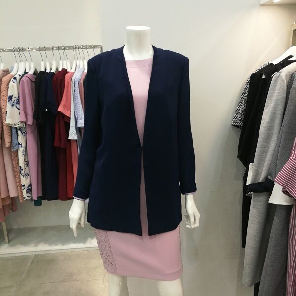 정장이지만 가디건 스타일로 편하게 걸칠수 있는 스타일이며 일자핏이라 꽉 조이지 않고 세련되게 입을 수 있다.