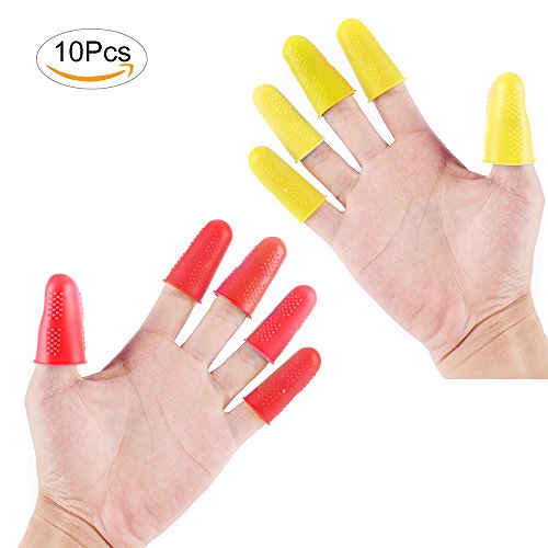 Fomei Silicone Finger Protectors 10 Pieces Hot Glue Gun Finger Caps, Non-Stick Covers for Hot Glue Wax Resin Honey Adhesives Scrapbooking Sewing in Small/Medium/Large Sizes (Yellow and Red)