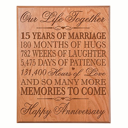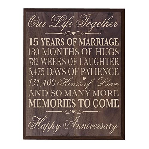 Honor the happy couple with a 15th wedding anniversary wall plaque. A treasured and lasting personal keepsake for wedding or anniversary with these special dates to remember. The 15th Anniversary wall plaque can be hung on wall. This special keepsake wall plaque will always be a wonderful reminder of the love that you have for one another. Honor the happy couple with a 15th wedding anniversary wall plaque decorative wall plaque.Feature