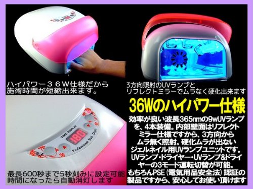 원본상품명: ネイル UVライト UVジェル用 3way 36W スペアランプ4本付