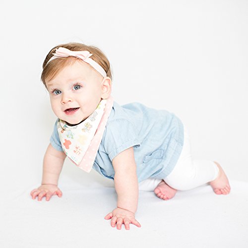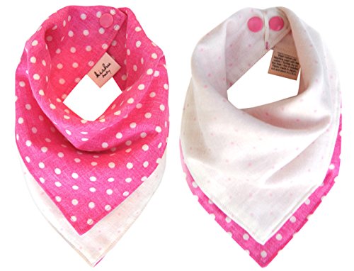 -. Feature : GIRLS BANDANA BIBS - Every day use, 3 reversible baby girl bandana bibs made in the USA from premium cotton muslin imported from Japan. Comes in a beautiful eco-friendly gift box! 3 reversible girls bibs = 6 ways to wear! / SUPER SOFT GIRLS BIBS | Our drool bibs for girls are luxuriously soft and get softer every time you wash them! We love muslin because it is durable, breathable, lightweight, absorbent, quick-to-dry and did we mention soft? / MULTI-USE BABY BIB | Also use as burp cloth or wipe cloth (unfolds into a perfect square) and hand towel (has fabric loop sewn in so you can hang from hook/handle in your powder room). Grows with your child and can be used well into the toddler years. / ADJUSTABLE NECK SIZE | Each dribble bib has 2 nickel-free CPSIA compliant KAM snaps that stay tightly secured without falling off. No scratchy velcro to irritate your baby girl's sensitive skin and stick to everything in your washer and dryer / BEAUTIFULLY SHAPED - Tired of cheap, ugly, oversized bandanna bibs that look more like a smock or apron on your baby? Our organic bandana bib is adorably fashionable, beautifully shaped and tastefully sized. Fits babies and toddlers ages 3 to 24 months