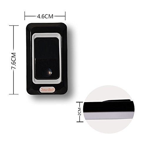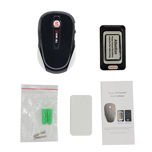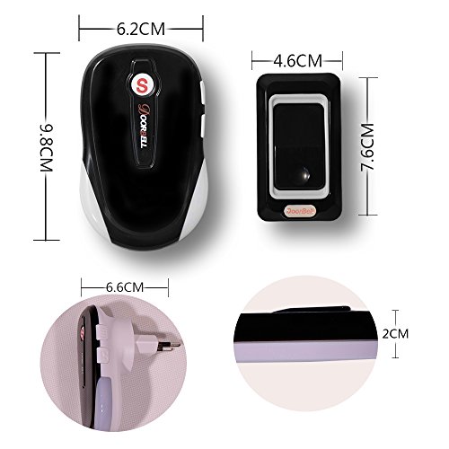 -. Feature : Mouse design:Wireless doorbell with a top-notch unique appearance,When the LED lights up, it is like a beautiful jumping mouse / High performance transmitter: Ultra-low power consumption; IP55 dustproof and waterproof; working temperature ranges from -68 °F-149 °F; withstands various harsh weather conditions / 300M wireless range:will not interfere with other equipment in your home or those of your neighbors; ensures that you will never miss any visitors, even if you are several rooms away / Memory function : Preserves your last set melody and volume level after a power outage; no need to reset to your previous settings; convenient and easy to use design for a better user experience / Easy to set up: Includes 2 screws, 2 anchors, 1 key, 1 adhesive tape for easy installation of the transmitter