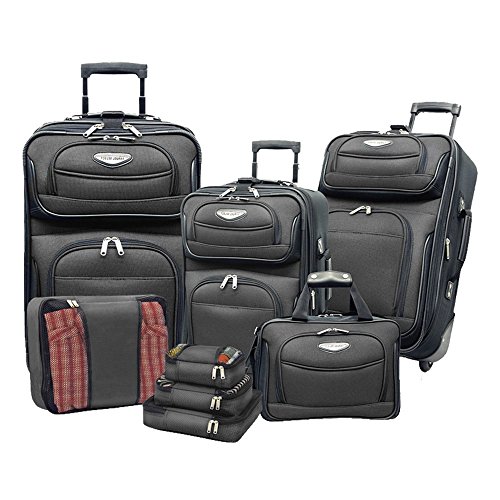 Studio : S E Publisher : S E Product Description Get yourself this all new travel cases with this deluxe solid design. This is elegant and totally durable to carry your stuff. A great item to have. Set includes: 8 Piece Travel Bags; 29", 25", 21" Upright, 15" Tote, Extra Large Packing Cube: 15 inches, Large Packing Cube: 13 inches, Medium Packing Cube: 11 inches, Small Packing Cube: 9 inches high. Features: Checkpoint-Friendly, Expandable, Multi-Compartment, Telescoping Handle, Carry On, Fashion, Softsided, Upright and Durable | Materials: Fabric, Polyester 0